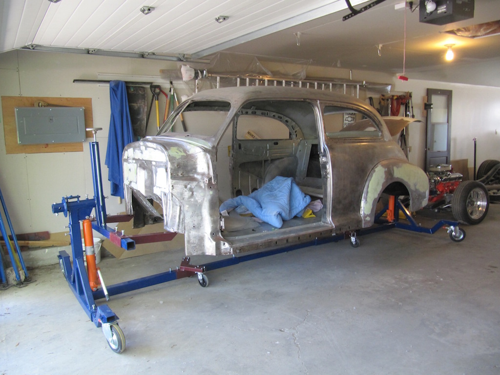 After crawling under the car several times, I thought there must be better way of improving the underside of the car without the wear and tear on my body. I saw advertisements for car rotisseries in Streetrod magazines but decided the cost (especially the delivery) was more than I wanted to pay. I than found an EBAY sale for car rotisserie plans for 12.99 USD:
